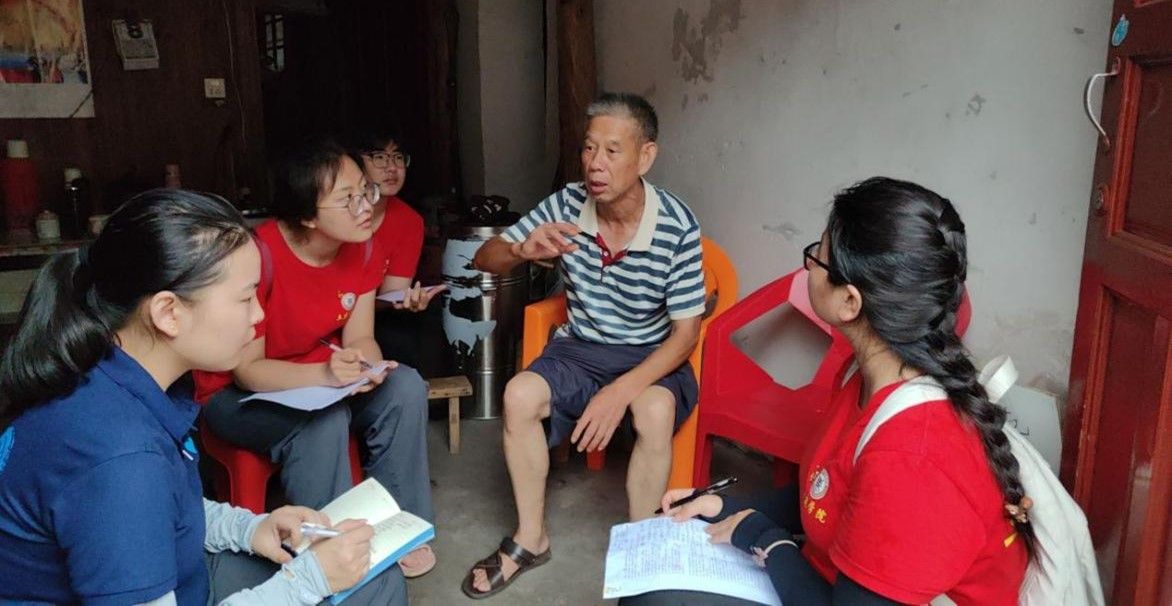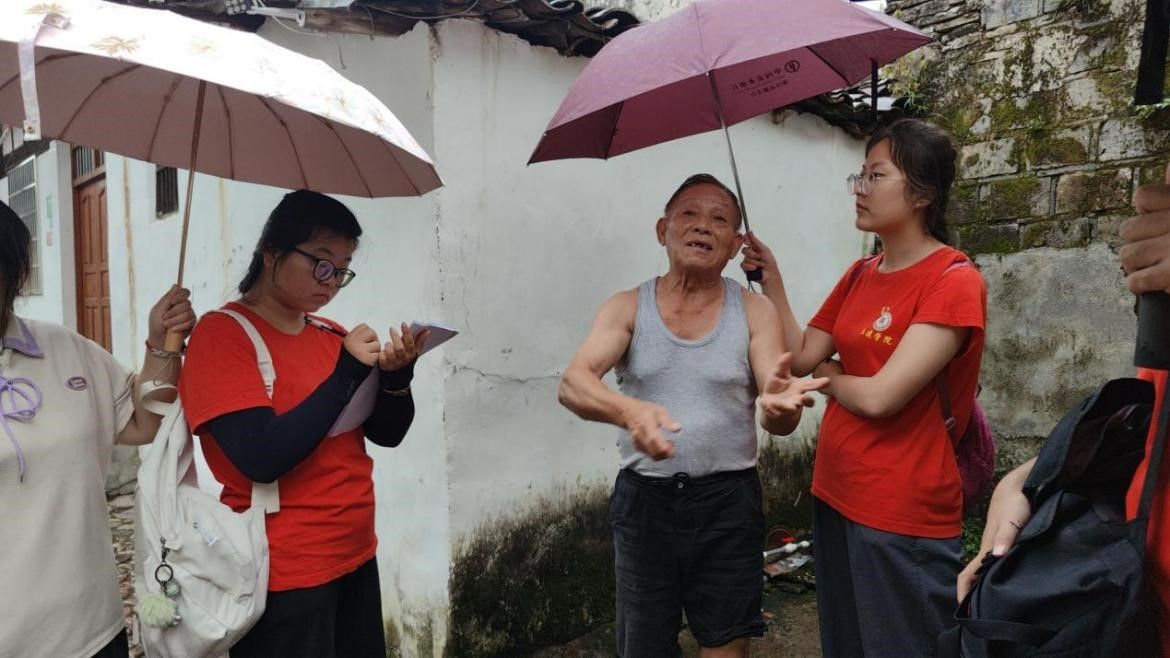 实践团成员们带着精心设计的问卷,穿梭于青石巷陌,叩开乡民家门,细致了解他们对古建价值的认知、日常修缮难题、政策了解程度以及对保护与开发的期待。在深入走访中,不同乡民的心声让实践团深切感受到古建筑保护的迫切与复杂。年过七旬的饶爷爷指着家中因不当修缮而霉变斑驳的墙面,痛心道:“特意找人修护,结果方法不对头。给门板刷了层油漆,看着亮堂,却把潮气闷在里面,导致木料发霉变形,把老物件的纹路质感都毁了!”随儿子回乡创业的王奶奶,对古镇也感情深厚,她忧心忡忡地指着院角松动的木雕:“看着这些宝贝快散架了真心疼,就盼着懂行的专家来好好修修,别让老物件在咱们手上断了传承。”无论是世代居住的原住民还是新乡民,都表达了对古建的珍视与忧虑。祝阿姨特意为实践团成员泡上当地茶,一句“把大家的想法带出去,让更多人关注石塘的老房子”的郑重托付,更让学子们深感肩上责任的沉甸甸。