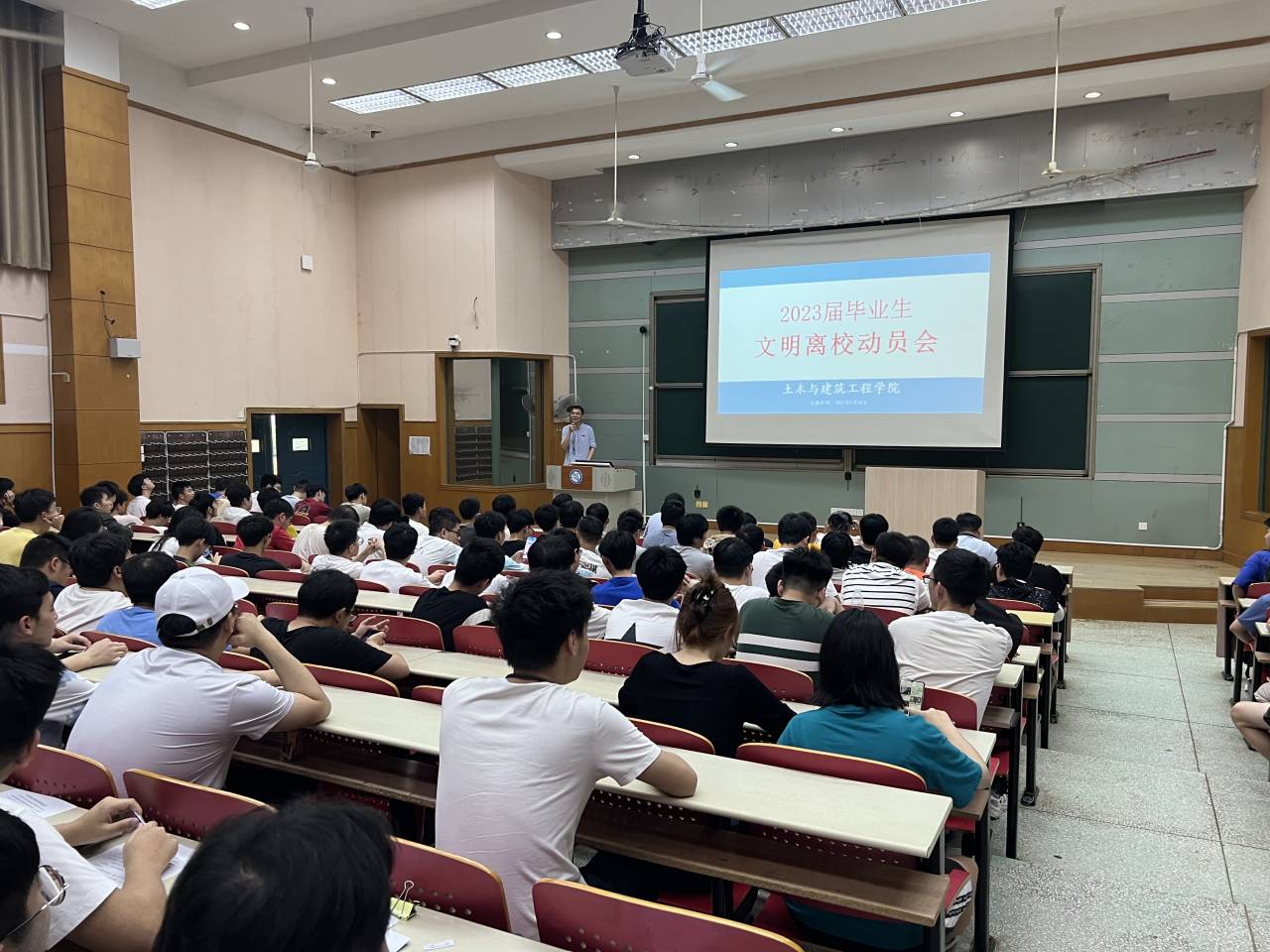 为有序、便捷、高效地做好2023届毕业生文明离校工作,5月26日,williamhill威廉希尔中国在北C104举办2023届毕业生文明离校部署会,学院党委副书记李甘、全体辅导员、毕业班班主任及2023届毕业生共300余人参加会议。