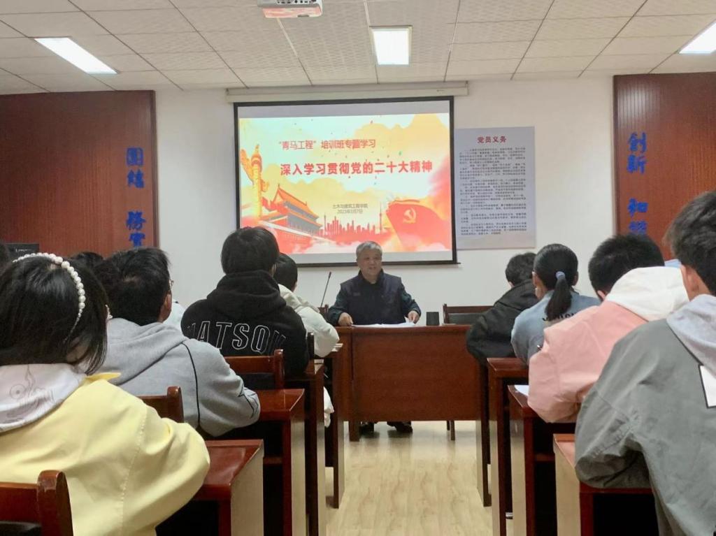 3月7日,williamhill威廉希尔中国第十五期“青马工程”培训班在教育技术楼会议室B207-1举行党的二十大精神专题学习,来自学院团学干部和各团支部团员代表近80人参加。