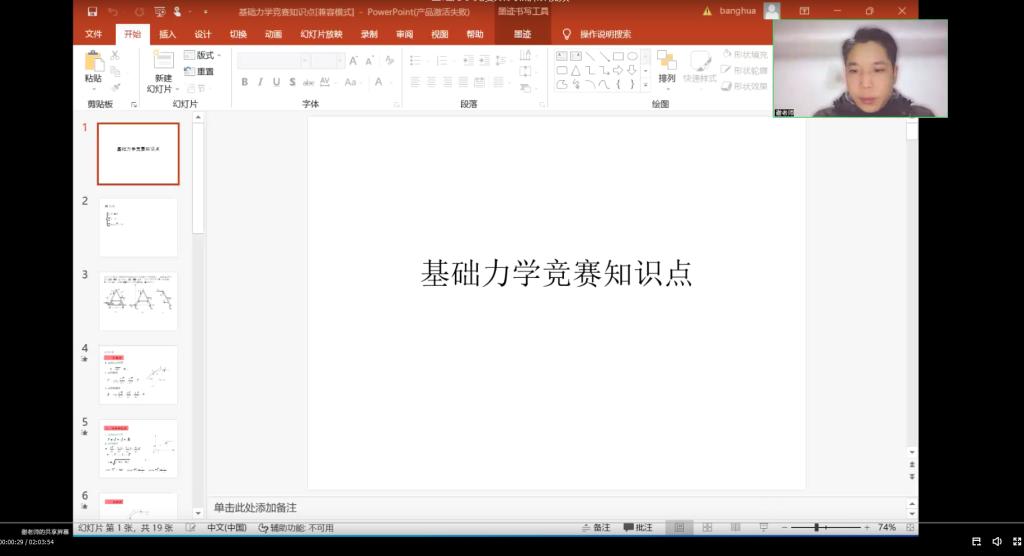 谢帮华老师就赛程赛制、竞赛方式等进行简要介绍。同时,他结合多年力学教学经验,从静力学、运动学、动力学、压杆稳定、组合变形、能量法等方面进行了系统、详实的讲解。随后,就基础力学竞赛有关事项与线上同学们交流,分享比赛经验。