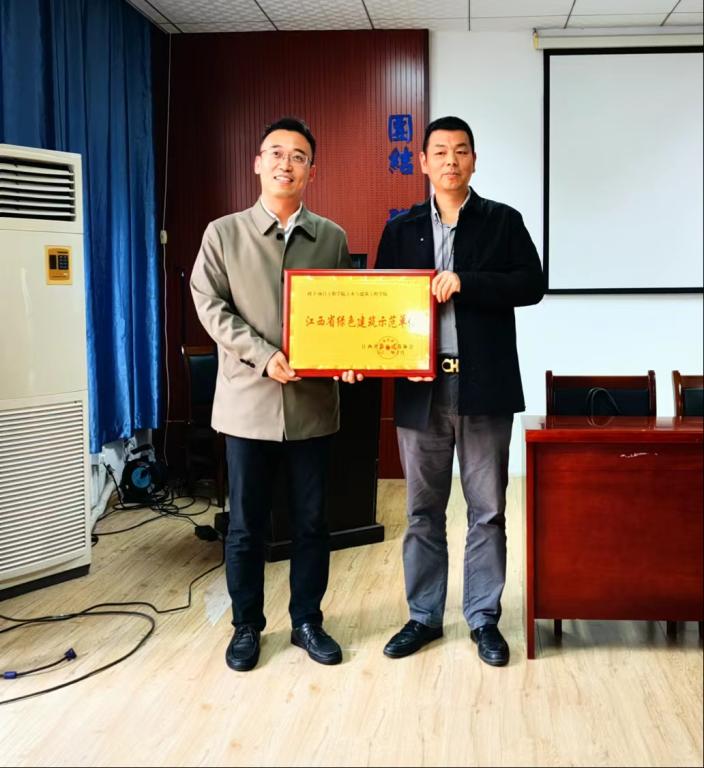 讲座前,刘谨教授代表江西省绿色建筑协会为我院颁授会员单位和江西省绿色建筑示范单位。(文/图 李森)