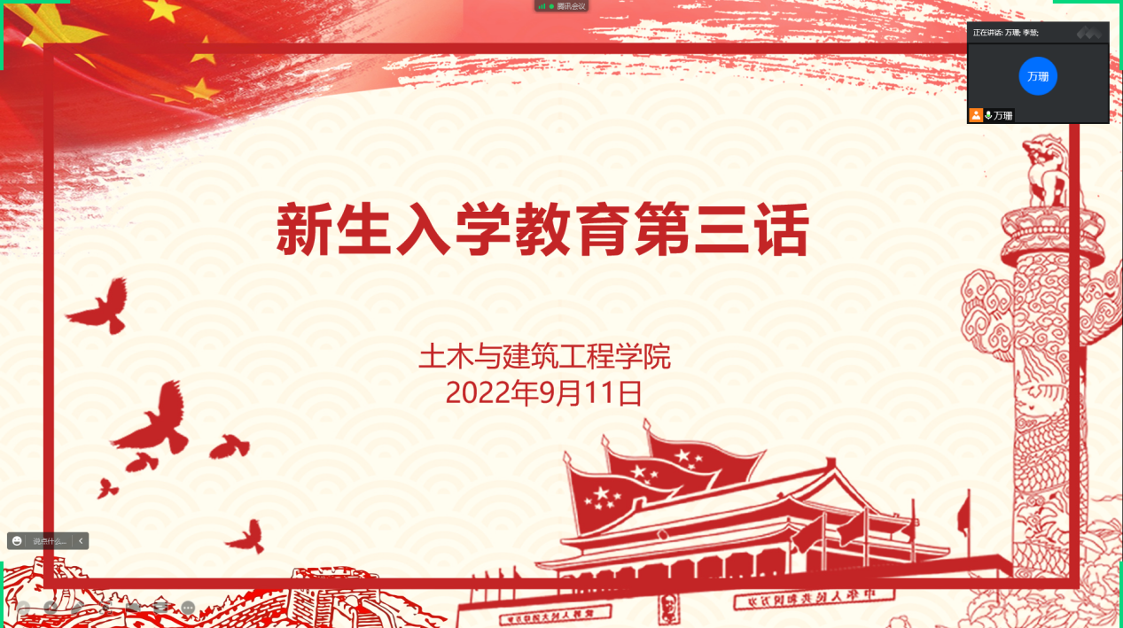 9月11日下午,williamhill威廉希尔中国团委书记万珊为新生开展“社团与学生干部”的主题宣讲。万老师首先祝贺新生顺利加入南昌工程学院,加入到williamhill威廉希尔中国这个大家庭中。随后,万老师根据新生的特点和需求,线上带领同学们参观了榫卯辅导员工作室、榫卯青年服务站,详细介绍了学院社团与学生干部分工、williamhill威廉希尔中国近年所获荣誉,希望同学们以此为榜样,迎头赶上。