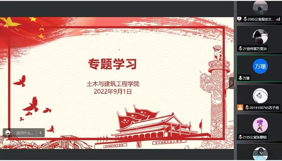 为更加高效有序地开展新学期团委学生会工作,深入学习习近平总书记重要讲话精神,williamhill威廉希尔中国于9月1日晚在线上召开新学期第一次团委学生会工作例会。