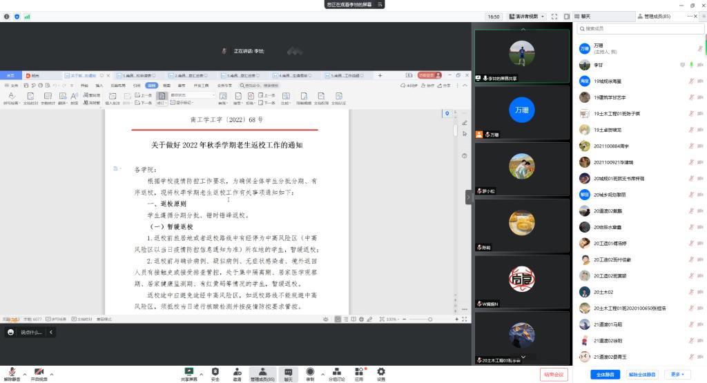 李甘结合当前疫情形势和学校实际,向与会师生详细介绍返校前、中、后不同环节的防疫工作安排,提醒师生做好自我健康管理,按时健康打卡,自觉遵守和执行防疫政策,并对近期重点工作进行了布置和强调。会后,邓婕对全体辅导员、班主任开展关于如何解决学生人际交往障碍的心理健康培训会。(文/图 万珊)
