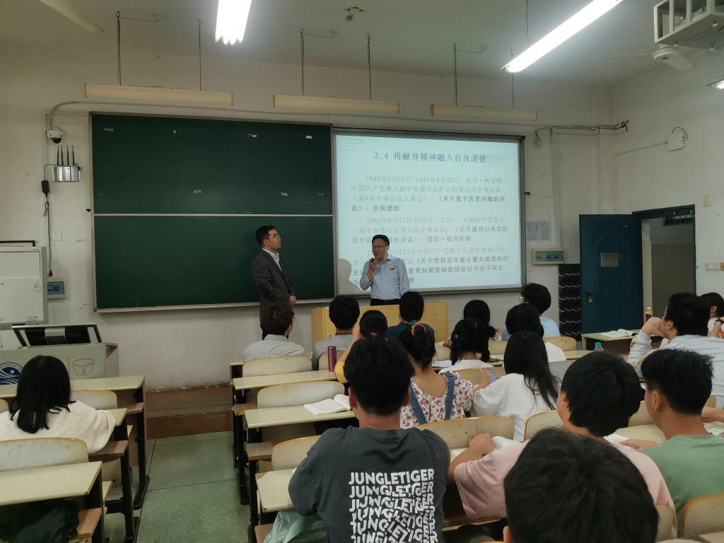 近日,校党委副书记、校长汪胜前深入思政课堂一线,在5月18日、5月26日分别听取了王建东老师讲授的《马克思主义基本原理》课程和王诚德老师讲授的《思想道德与法治》课程。