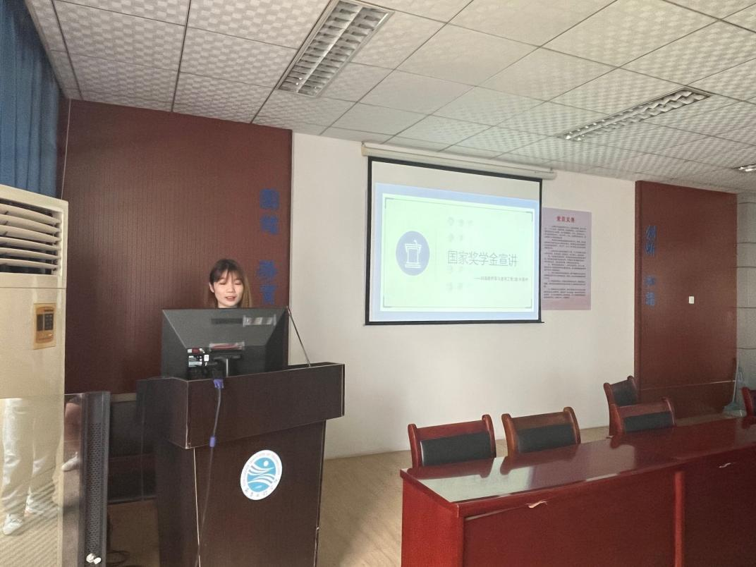为充分发挥优秀学生的榜样作用,提高同学学习与参加活动的积极性,5月18日,williamhill威廉希尔中国在土建楼b207-1举办了国家奖学金获得者宣讲会及颁奖典礼。出席本次活动的有辅导员邓婕老师、权益部工作人员、国家奖学金获奖同学以及五十余学生代表。