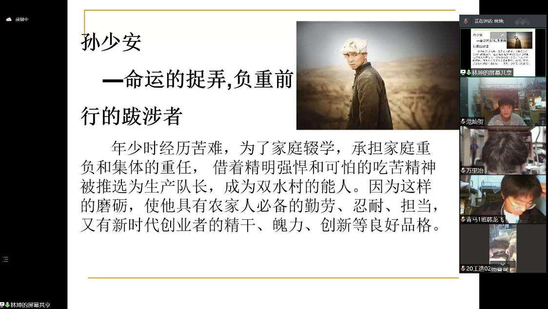 会议由范灿贺主持。首先由学生党员林坤同志给大家分享《平凡的世界》读后感,林坤同志结合时代地总结道:“ 路遥在教会我们,不必用尽生命去做一个漂亮的人,但是应该用尽生命去做一件让人叫好的漂亮事。正当如今新冠疫情,无论是医护人员还是防疫工作者,他们都是平凡的人,他们却做着不平凡的事,正因为有了他们,平凡的世界更多了一份希望和温暖,他们在做的是一件令人叫好的漂亮事。” 林坤同学分享之后,颜绅、张明辉等同学也主动分享了自己对于《平凡的世界》的解读。而后,万里治、胡家杰、李俊等10位同学通过视频朗读习近平总书记近期的重要讲话,涵盖中国梦、习近平总书记与大学生谈话、中国航天等近期发生的事;傅一啸、丘积林等同学发表了对以上话题的感想。整个会议内容丰富实用,从社会联系到个人,强调了自我奋斗的意义,给青年指明了在当前时代中奋斗的方向。(图/范灿贺 文/张明辉)