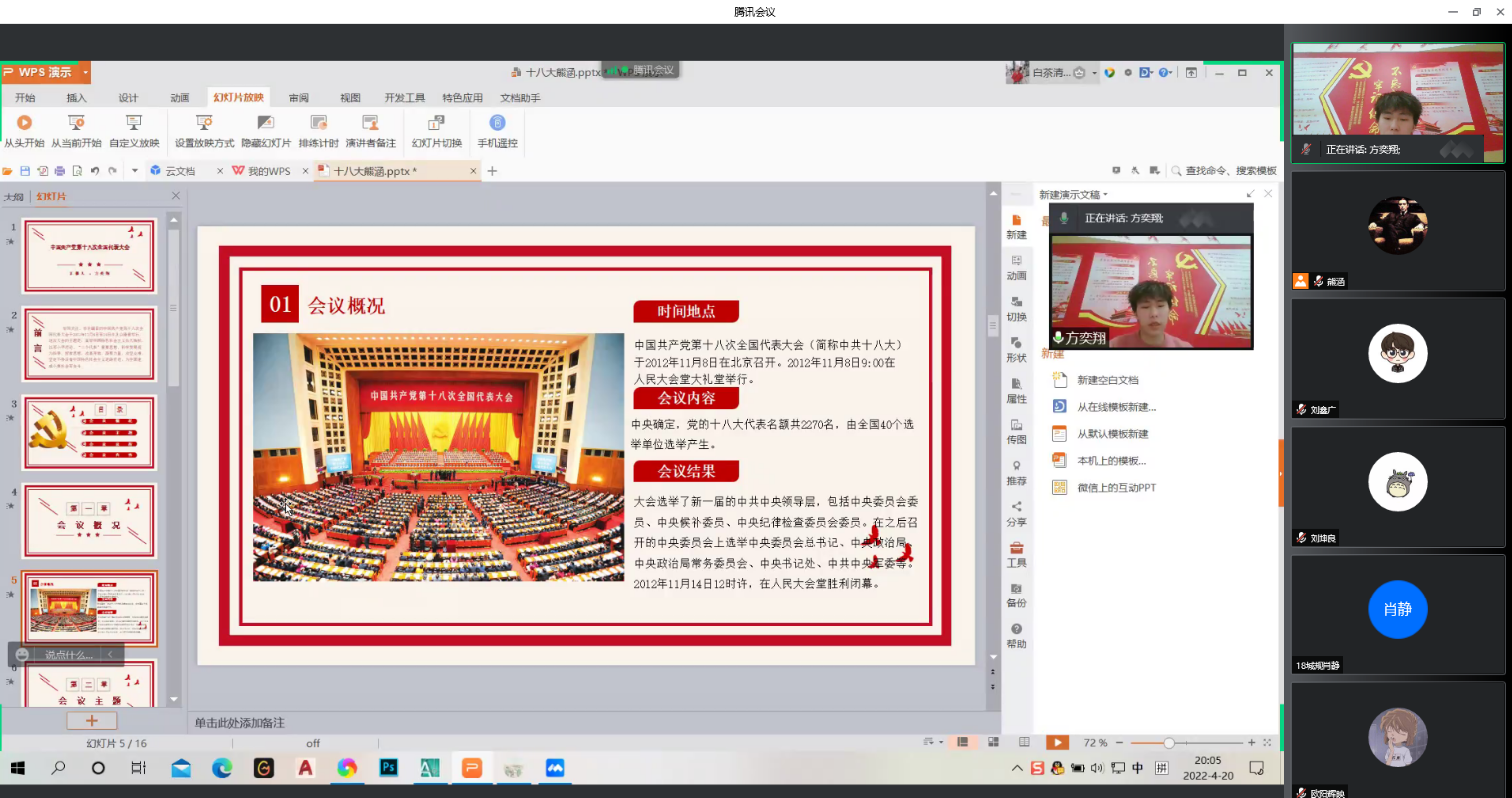 随后,方奕翔为支部全体团员作专题微团课分享。他结合自身党史学习教育体会,着重围绕党的十八大报告的相关内容,讲述我国在十八大之后产生的巨大变化,以及带来的深远影响。