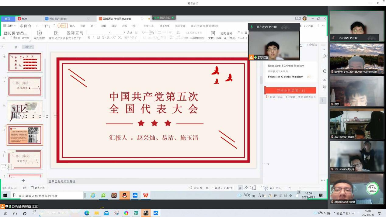 为引导广大青年坚定理想信念,激发奋进力量,以饱满的精神面貌喜迎二十大、庆祝建团百年,4月29日下午,williamhill威廉希尔中国2021级给排水科学与工程1班团支部开展“喜迎二十大、永远跟党走、奋进新征程”线上主题团日活动,团支部全体人员以及第三学生党支部三名党员线上共同参与活动。