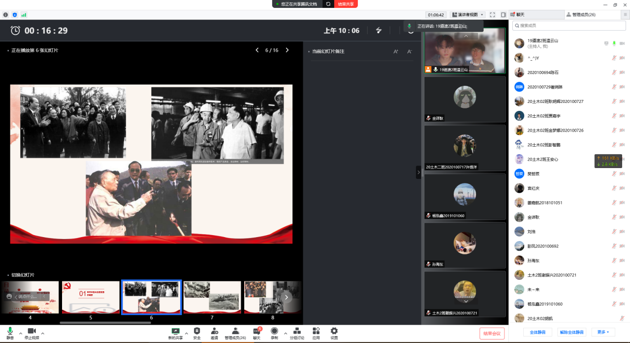 第三学生党支部党员姜佳航和廖宏剑结合《团的光辉历史》团课视频,向线上团员青年讲述了团的相关历史。并鼓励大家,从党史、团史中总结经验,汲取力量,积极向党组织靠拢,向先进看齐,早日成为一名光荣的共产党党员。
