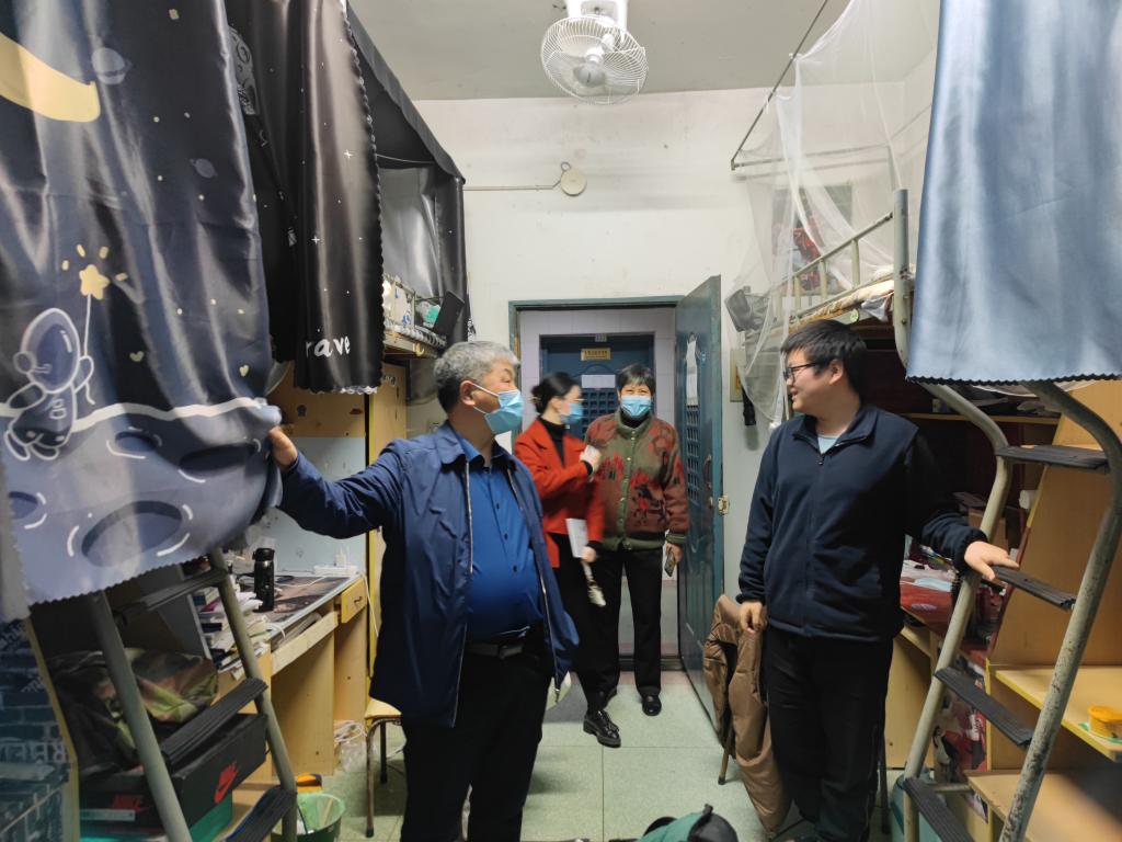 会后,学院领导和老师深入学生寝室,与同学们亲切交谈,仔细了解近期同学们的学习、生活情况、思想动态、毕业生工作落实、毕业设计进展等情况;检查上网课学习情况和学习效果给与指导;提醒同学们积极配合学校疫情防控工作,提高个人防护意识,做好个人防护,共同维护校园安全稳定。(文/图 万旎)