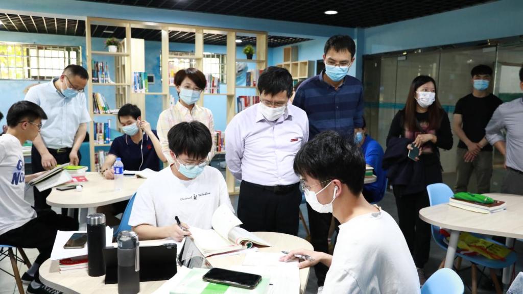 汪胜前走进学生寝室,细心询问同学们的思想状况、线上学习情况和日常生活安排,在楼栋自习室与学生亲切交流,听取同学们学习和生活上的困难并予以指导。他提醒大家要学会学习,勤奋自律;注意加强自我防护和体育锻炼,保持良好的学习、生活规律;严格遵守校规校纪和疫情防控期间校园管理规定,有困难及时向班主任、辅导员反映。汪胜前还仔细查阅了学生体温检测等工作台账,对做好疫情防控工作提出了要求。