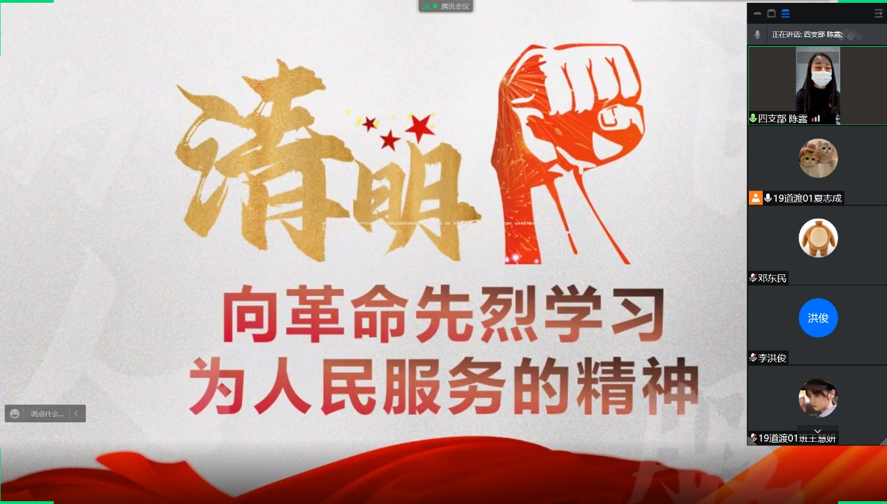 曾子曰:“慎终追远,民德归厚矣。”清明时节,祭拜祖先,缅怀先烈是中华传统文化,更是我们崇尚英雄,寄托哀思的一种方式。4月5日,williamhill威廉希尔中国第四学生党支部在线上开展以“向革命先烈学习为人民服务的精神”为主题的会议。