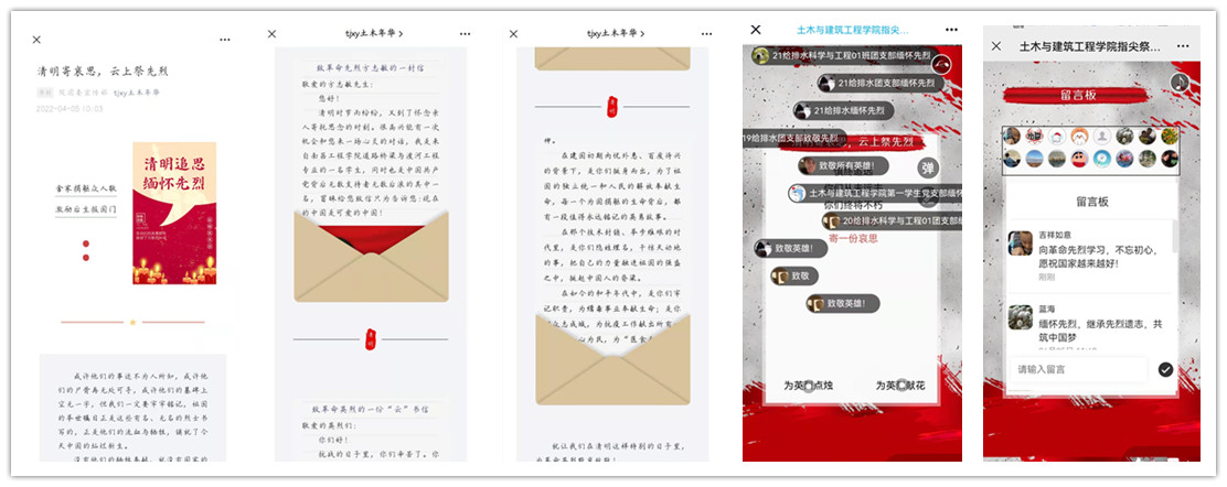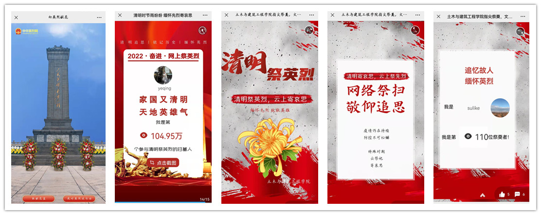 榫卯辅导员工作室以党建带团建,全院师生在“中华英烈网”、“江西英烈网”、学院“土木年华”微信公众号等线上平台参与了“清明寄哀思,云上祭先烈”主题活动。党旗所指,就是团旗所向。近日,各党支部开展“清明祭英烈”线上组织生活,“党员讲堂打卡”活动等,组织党员给入党积极分子讲述先烈事迹,传承革命传统。学院50个基层团支部开展“2022·奋进·网上祭英烈”主题活动,党团员纷纷表示,要把对革命先烈的敬仰之情转化为前进动力,在疫情防控、社会实践中放飞青春梦想。(文/万旎 图/williamhill威廉希尔中国)