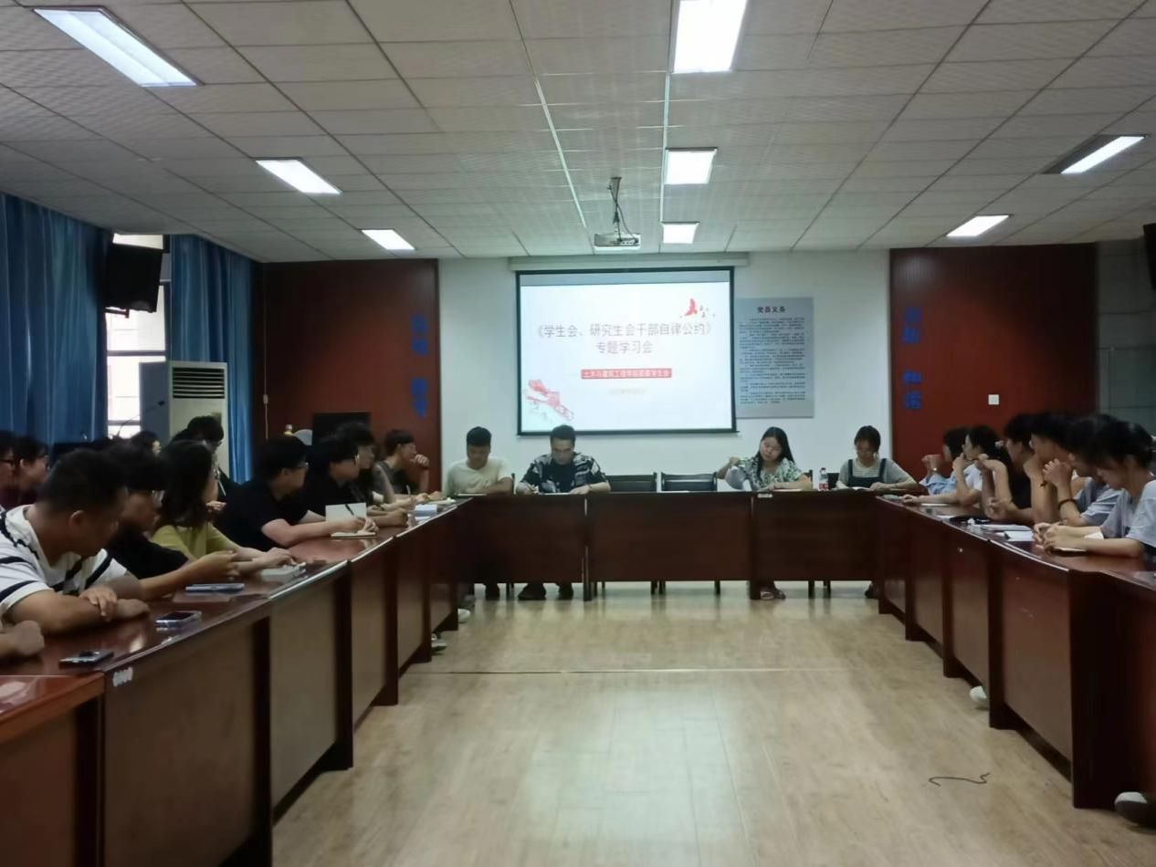 9月6日晚,williamhill威廉希尔中国学生会组织学生干部在土建楼B207-1会议室集中学习《学生会、研究生会干部自律公约》。此次会议由学院辅导员李慧主持,学院全体学生干部参加此次学习。