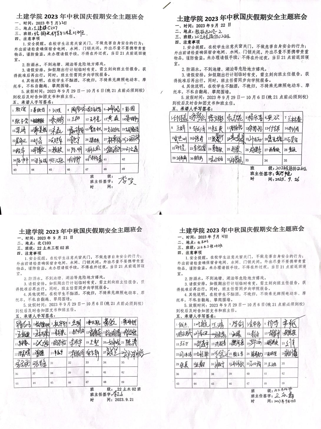 随后,我院各个班级陆续开展了以“中秋、国庆假期安全教育”为主题的班会活动。班会上,各班主任围绕防诈骗、防溺水、交通安全和饮食安全、假期注意事项等方面,详细介绍了一系列安全事件应采取的具体措施,并结合生活中常见的典型事故案例进行讲解,提醒学生要时时、事事、处处注意安全,预祝同学们度过一个安全、愉快的双节假期。(文/图 黄航)