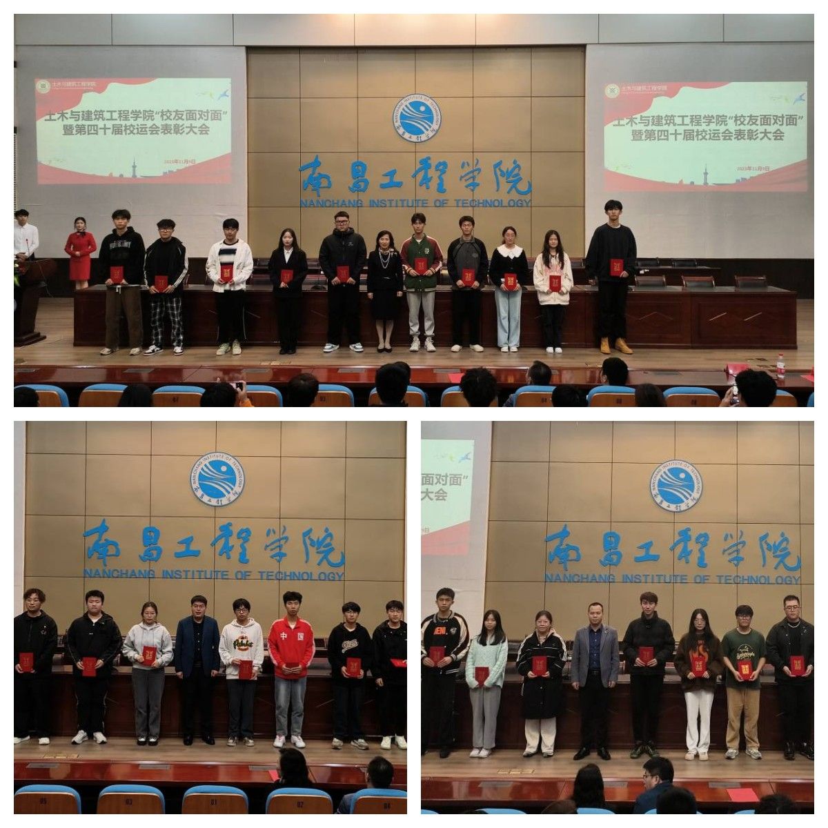 随后,汪小布、傅鹏、蒋峰为在南昌工程学院第四十届田径运动会上表现突出的运动员和先进个人颁奖。
