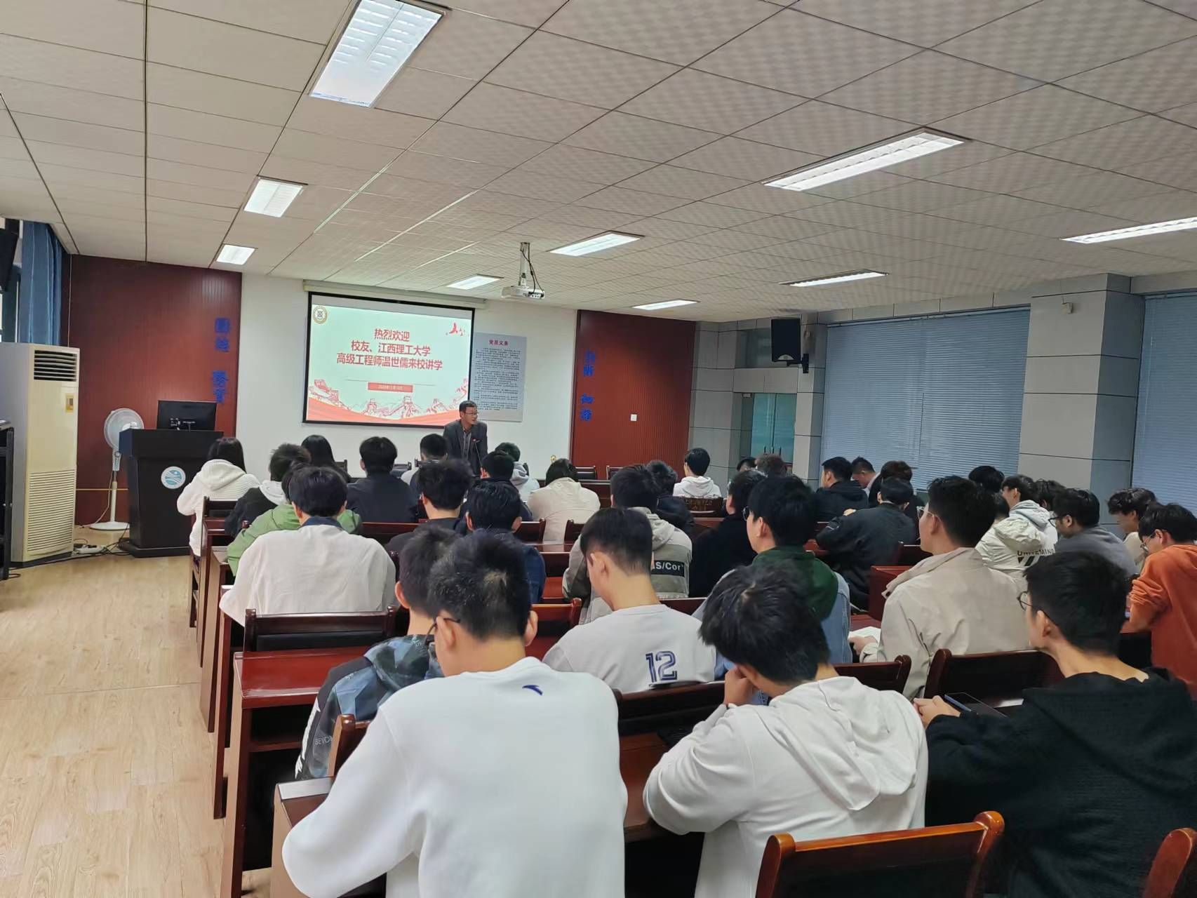 11月10日下午,应williamhill威廉希尔中国邀请,校友、江西理工大学高级工程师温世儒在土建楼B207-1会议室为我院师生作了“为理想作画、为生活加彩”的讲座。讲座由williamhill威廉希尔中国党委副书记李甘主持,土木工程专业80余名学生参加。