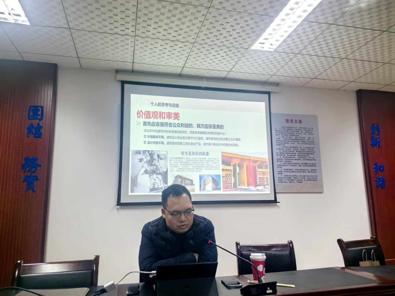 为加强城乡规划专业教师队伍建设,提升学生专业认同感,12月27日晚,williamhill威廉希尔中国在土建楼B207-1会议室开展“城市设计的学习、实践与思考”学术讲座暨主题党团日活动。活动邀请雅克设计公司技术总监、2009级城乡规划校友吴友阳主讲,学院第二教工党支部委员、城乡规划专业负责人丁芸主持,学院第二教工党支部、第三学生党支部党员代表和城乡规划团支部团员代表共计80余人到场参会。