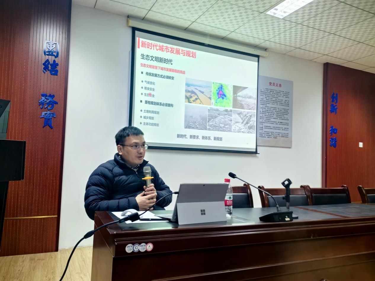 活动中,占晓林所长简要介绍了城市的起源、我国古近代以及当代城市建设,详细解读了生态文明背景下城市发展面临的挑战。同时,结合党的二十大报告中生态文明新时代的理念,倡导与会成员在城市规划建设过程中要推动绿色发展,促进人与自然和谐共生,推动构建人类命运共同体,创造人类文明新形态。