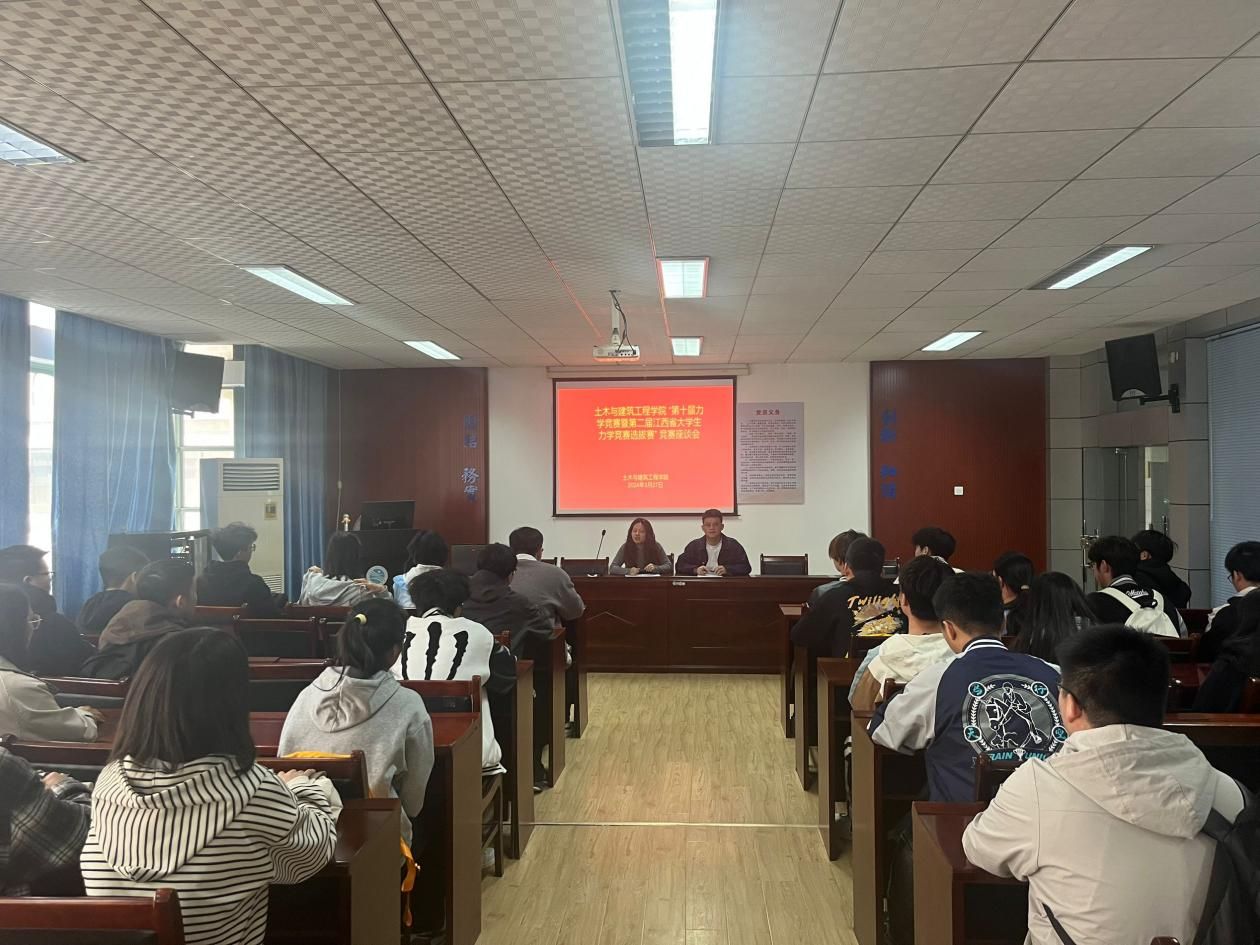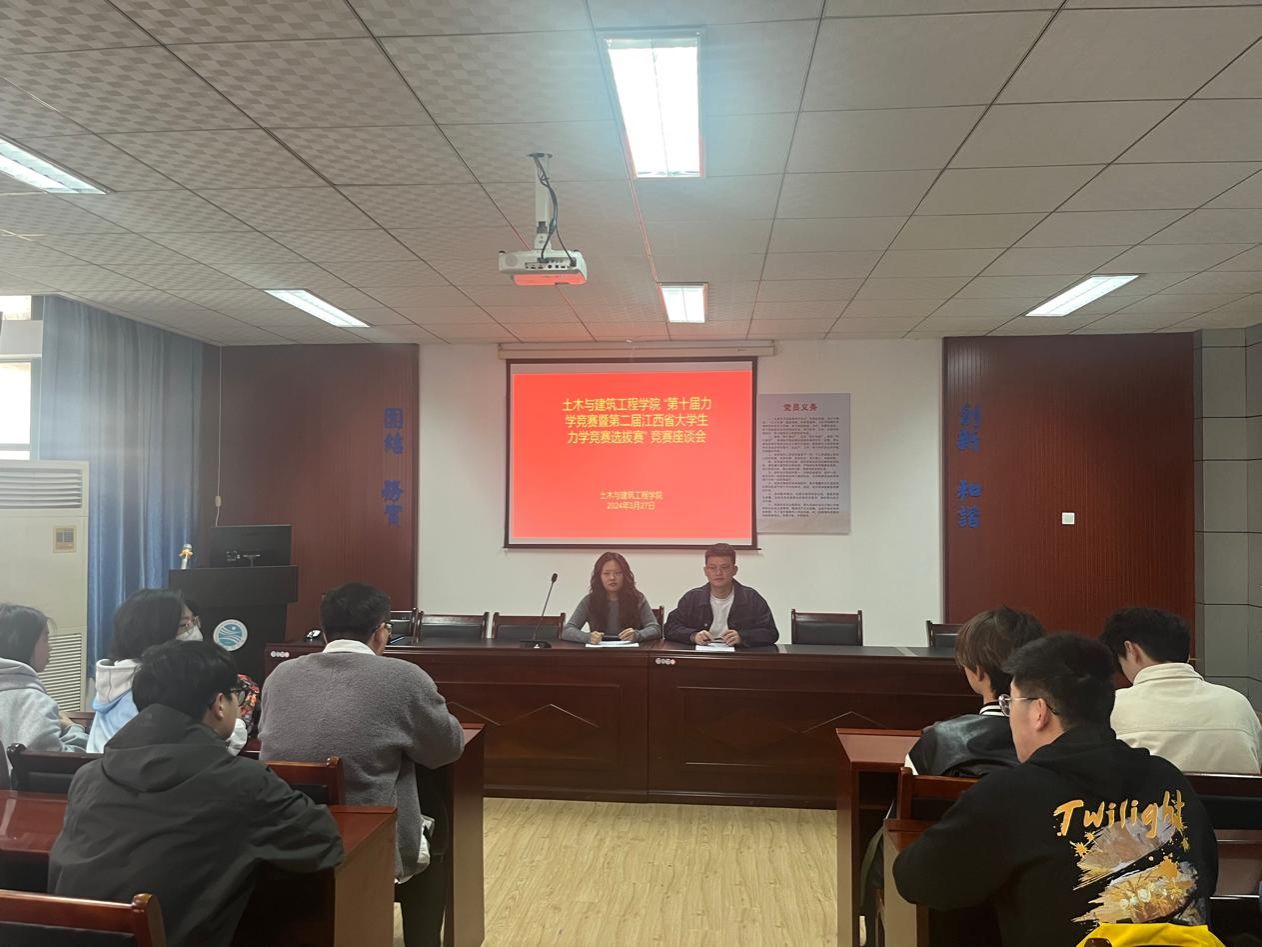 为活跃全校学术氛围,培养力学创新人才,3月27日,williamhill威廉希尔中国团委在土建楼B207举行了我校第十届力学竞赛暨第二届江西省大学生力学竞赛选拔赛答疑会。本次座谈会由辅导员黄航主持,学院分团委负责人万珊、各班级学委、力学实践与工程创新社团成员等50余人参加了会议。