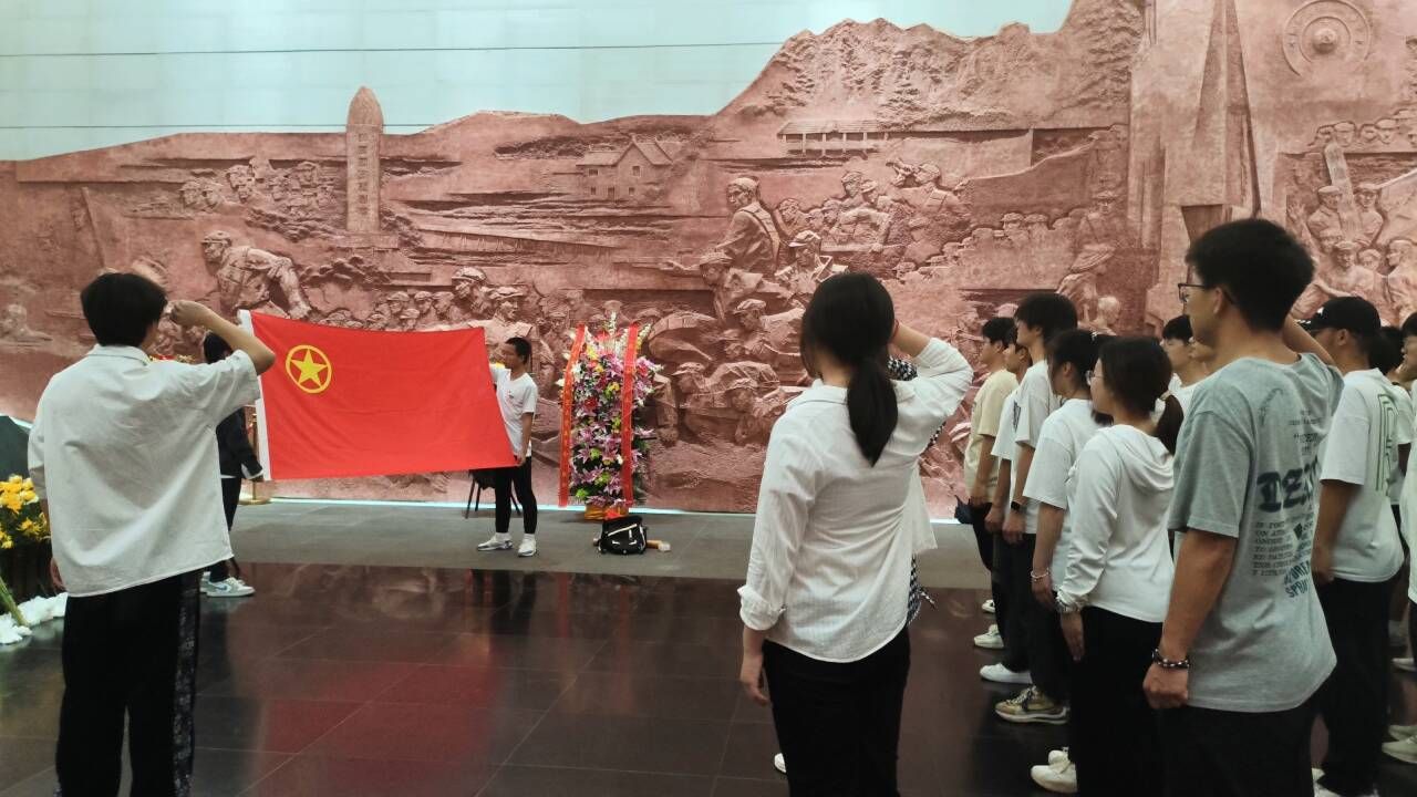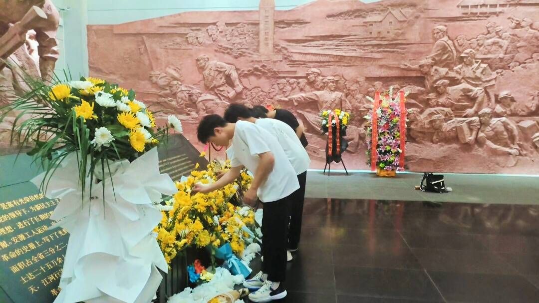 在革命烈士纪念堂内,同学们缓步走向烈士雕像前,怀着对英烈的无比崇敬之情向烈士们鞠躬默哀、敬献鲜花、寄托哀思。活动中,团员们重温入团誓词,分享英烈故事。随后,在讲解员的带领下参观馆内文物,进一步感悟革命先烈砥砺奋进的光辉历史,从中汲取奋进力量。