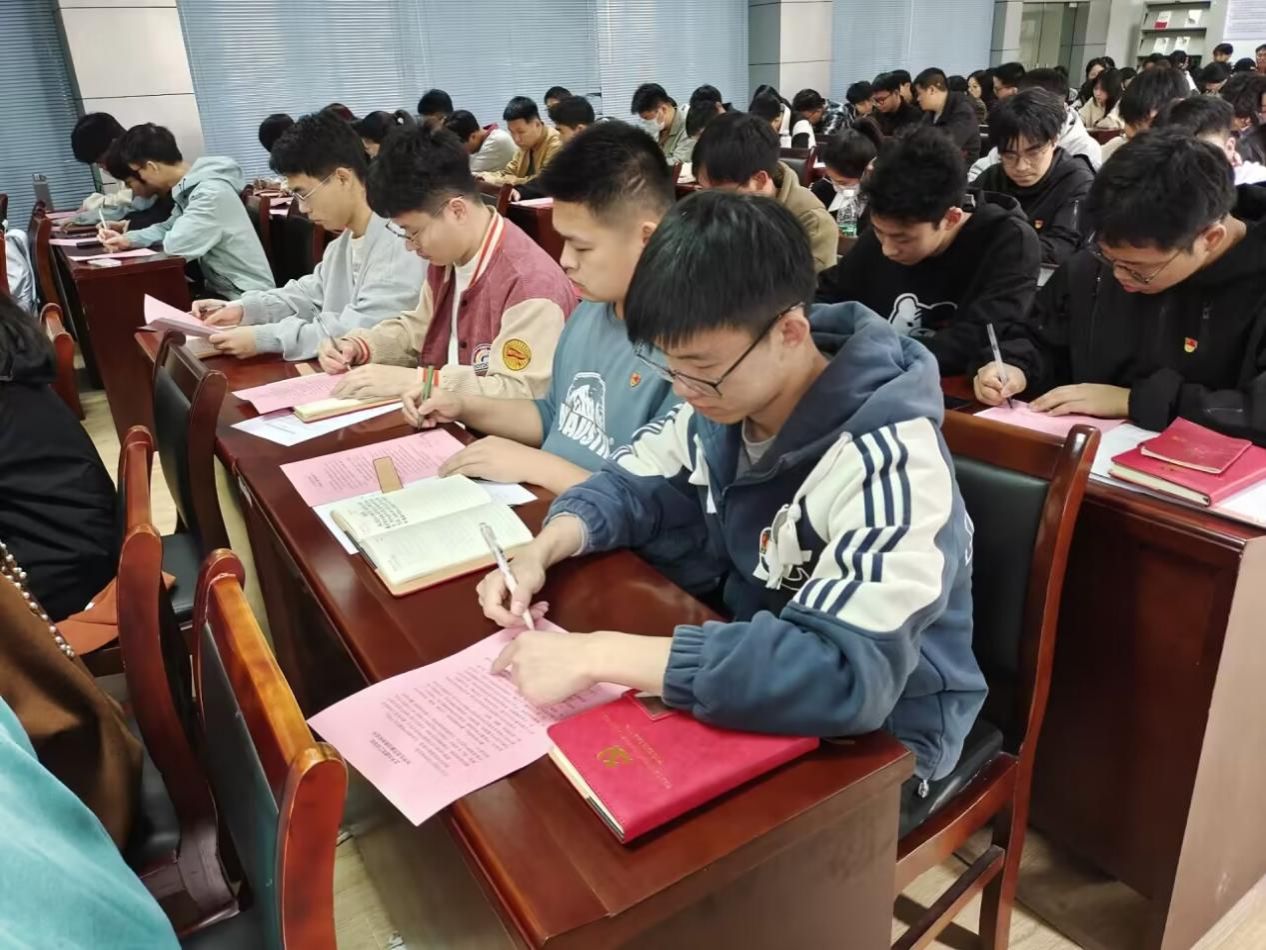 会上,第四学生党支部书记黄航带领全体党员面向党旗宣誓,重温入党誓词,要求全体同志牢记初心使命。学生党员代表郝林坤宣读廉洁修身承诺书,表明要严格以党员的标准严格要求自己。全体党员签署学生党员廉洁修身承诺书。随后,学院组织员万旎宣读大学生党员设岗定责工作实施方案,全体党员签订大学生设岗定责协议书。