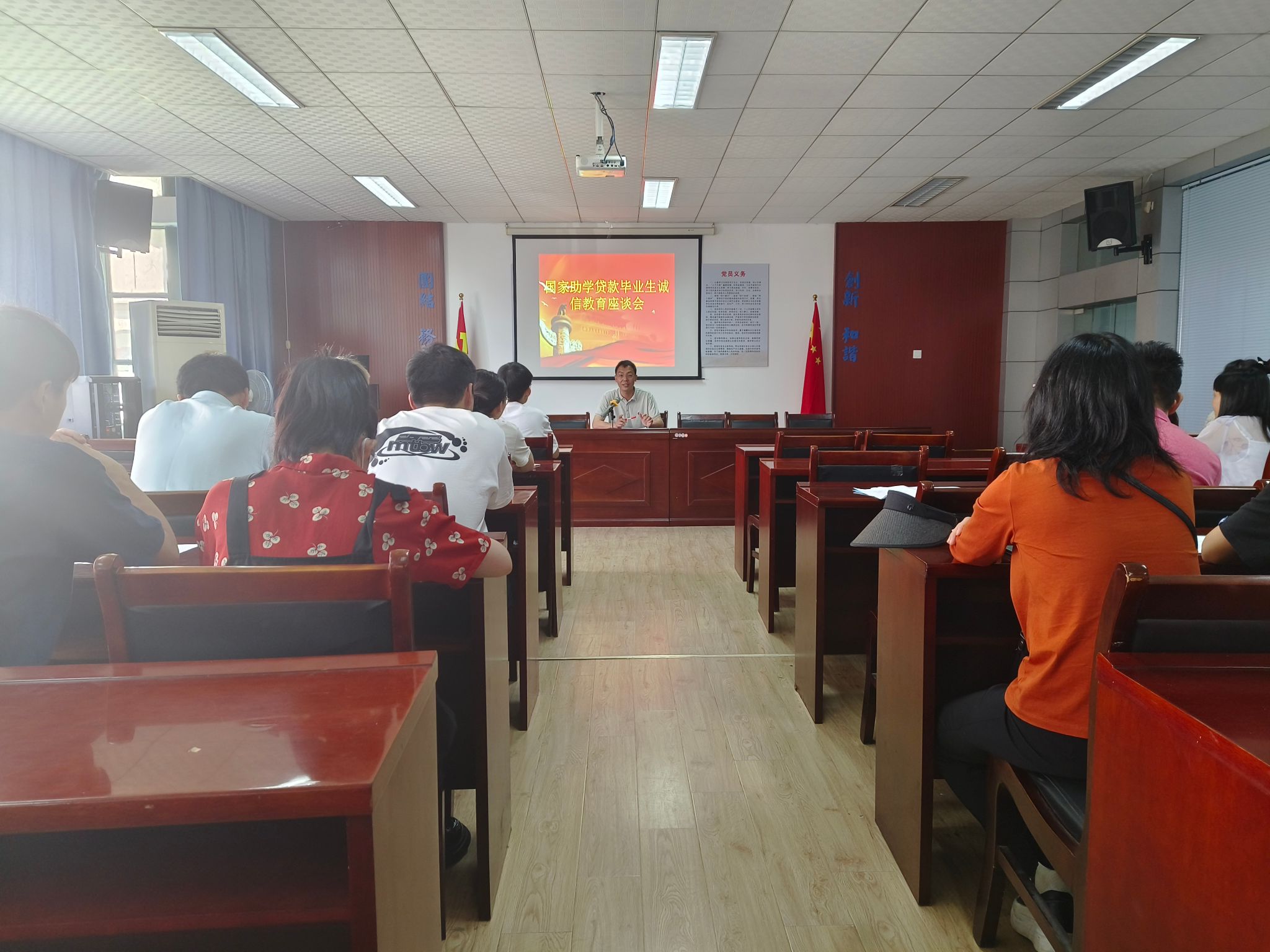 会上,李甘首先向贷款毕业生详细解读了文件《关于做好2024届毕业生助学贷款还款及离校审批工作的通知》。随后,他就国家开发银行和农村商业银行生源地贷款还款的注意事项进行了详细说明,并强调了诚信还款、诚实做人的重要性。(文/图 邓婕)