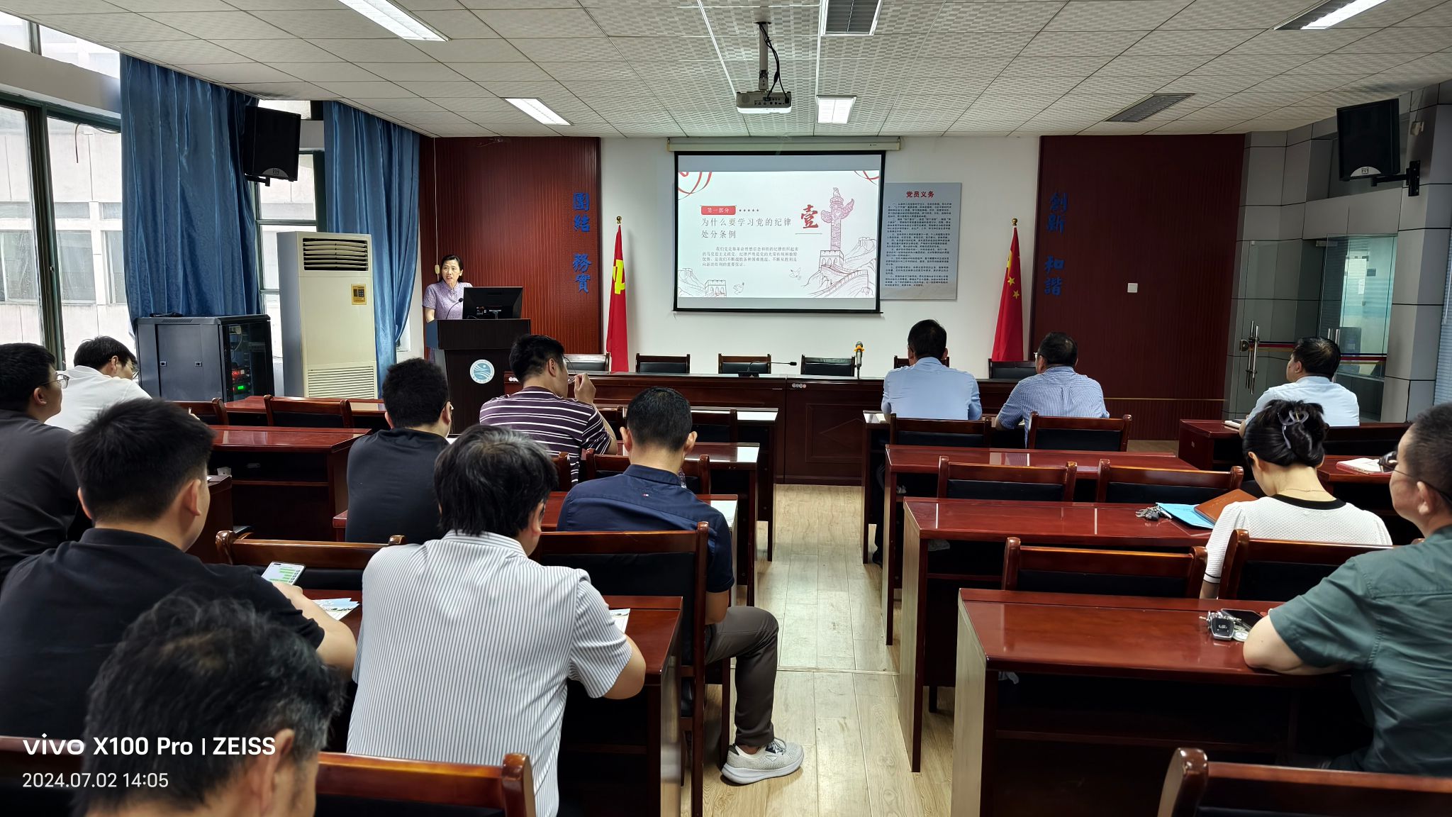 7月2日,williamhill威廉希尔中国党组织负责人以《深刻把握党的六项纪律的具体内容和实践要求》为题讲授党纪学习教育专题党课,学院全体教工党员参加。