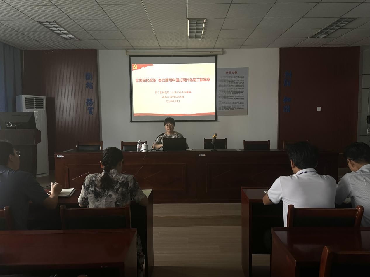为深入学习宣传贯彻党的二十届三中全会精神,奋力谱写中国式现代化南工新篇章,9月3日下午,校宣讲团成员、人事处(党委教师工作部)负责人、机械工程学院党委书记夏志红在williamhill威廉希尔中国宣讲,williamhill威廉希尔中国全体教职工参加。