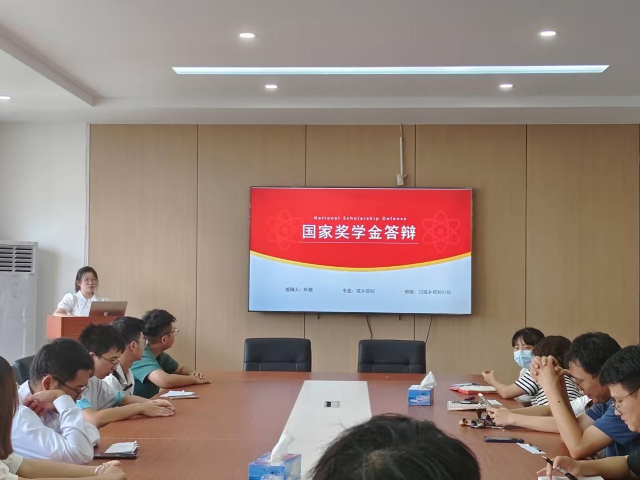 国家奖学金的评比,秉持公平、公正、公开的原则,采取综合审评与答辩相结合的方式,综合考量申请者的社会实践、志愿服务、文艺体育和精神文明建设等各方面的表现。申报人以PPT展示汇报的方式来进行答辩,评委对选手们的现场表现进行打分。选手们现场答辩的分数和之前的获奖成绩得分加权计算后,最后评选出谢仁臻、龚鸣慧二位同学为学院国家奖学金推荐人选。(图/文 黄羽莹)