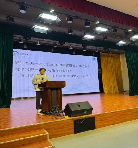 支部委员、道路桥梁与渡河工程专业负责人吴多以“中国桥梁千年演变历程凸显文化与科技自信”为题,采用章节形式为师生们呈现桥梁这一传统又伟大工程结构的全貌。他从桥梁的类型、发展轨迹、建造技术等方面为同学们娓娓道来我国桥梁从古至今的演变史。从最初“造舟为梁”的木浮桥、到明清时代的石拱桥、近代钢桥和现代的高性能混凝土桥梁,同学们深刻地感受到祖国的强大和科技实力日新月异的变化。