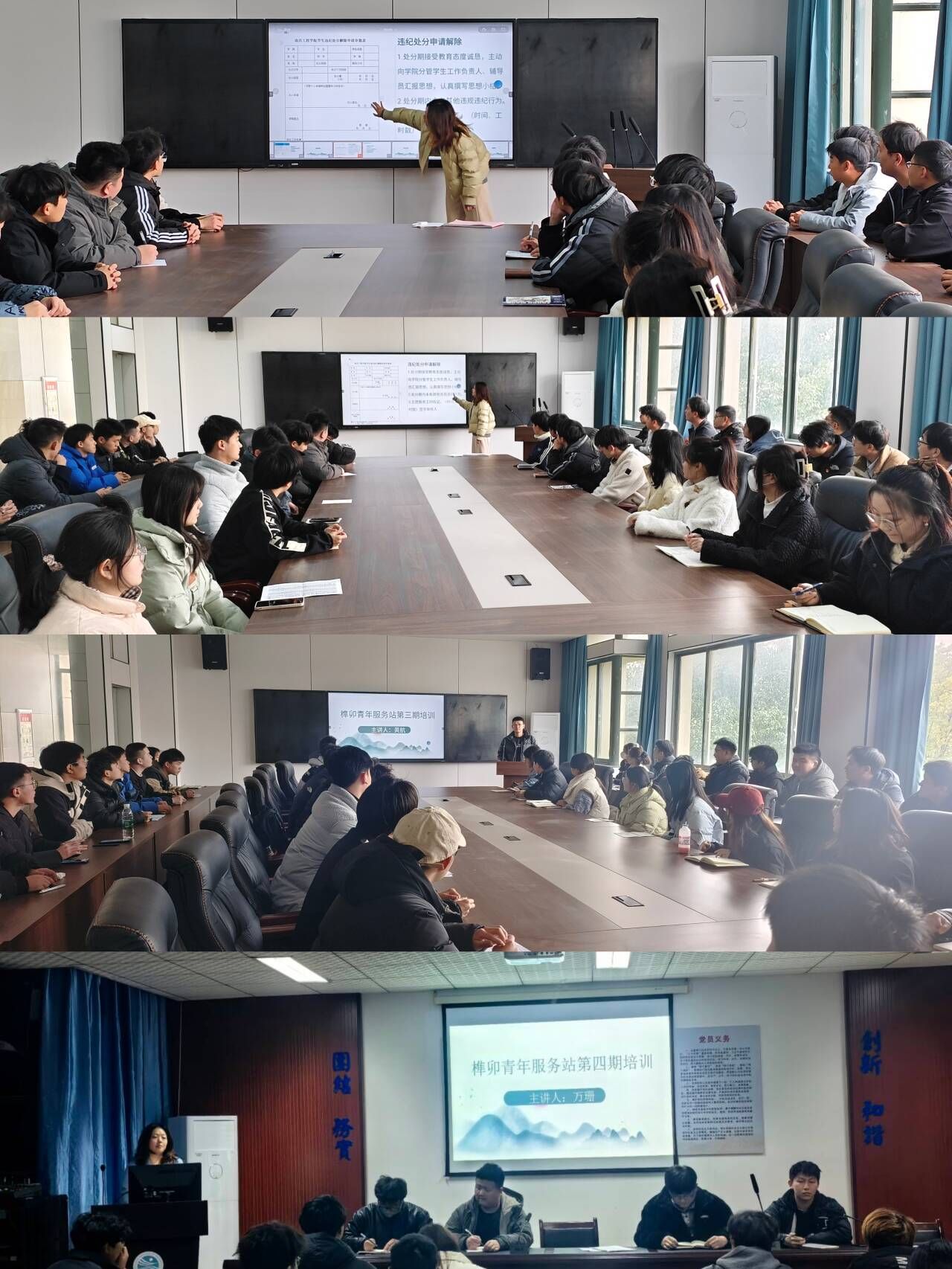 培训围绕校史、院情、学院党建品牌特色项目,以及学生证件办理、材料申请审核、生活咨询等内容,结合日常工作案例实际进行深入细致讲解,有效提升榫卯青年服务队成员工作业务能力。培训结束后将进行统一考核,考核合格方能在“榫卯青年服务站”上岗为同学们服务。