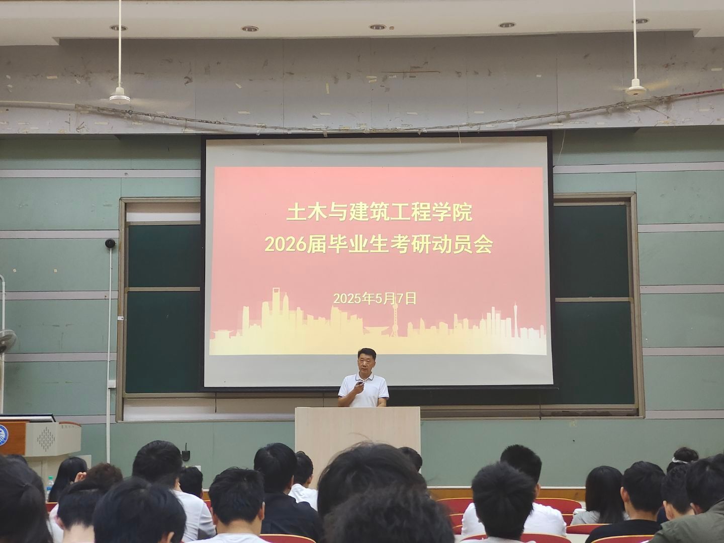 会议伊始,徐斌院长发表动员讲话。在讲话中,他结合自身求学与工作经历,深入浅出地分析了当前土木行业的发展形势。徐院长指出,随着科技的飞速发展,土木行业正朝着智能化、绿色化等新方向迈进,对高层次专业人才的需求日益增长。他鼓励同学们要把握时代赋予的机遇,充分挖掘自身潜力,勇敢地投身到考研的征程中,为未来的职业发展打下坚实的基础。徐院长的讲话让同学们对考研的意义和价值有了更深刻的认识,也激发了大家的考研热情。
