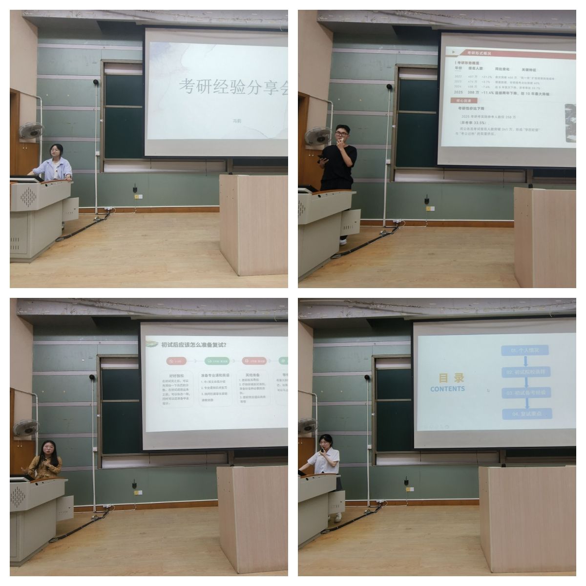 随后,2025届优秀考研学长学姐依次上台分享高分经验。他们从备考计划的制定、学习方法的选择、心态的调整等方面进行了详细的介绍,并结合自己的亲身经历,为同学们提供了许多实用的建议和宝贵的经验。学长学姐们还分享了在考研过程中遇到的困难和挫折,以及如何克服这些困难的方法,让同学们更加清晰地了解了考研的全过程,增强了同学们备考的信心。