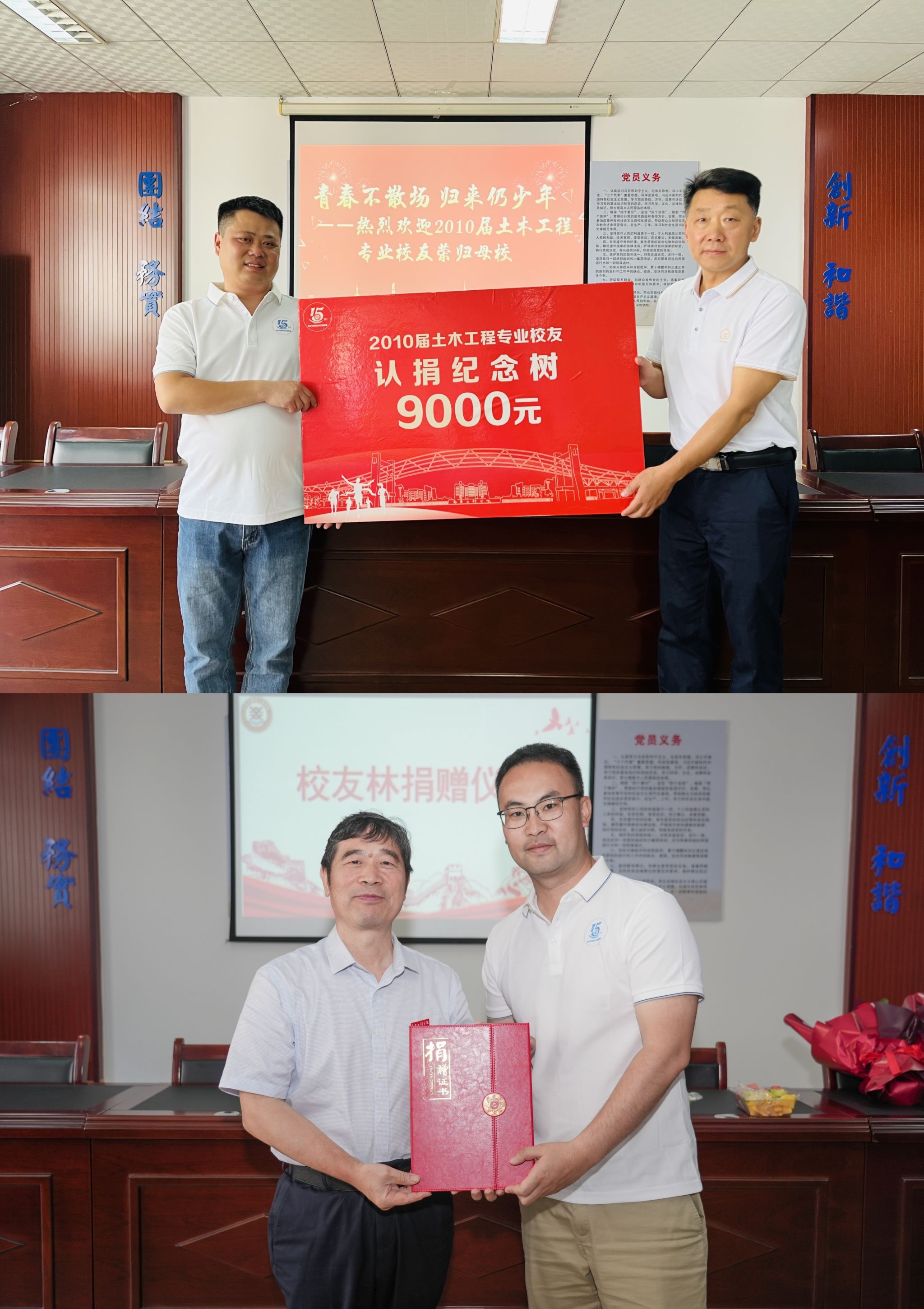 活动现场,校友代表举行“校友林”捐赠仪式,校友们以认捐纪念树的方式感恩母校培养之情,吴泽俊向校友代表颁发捐赠证书。