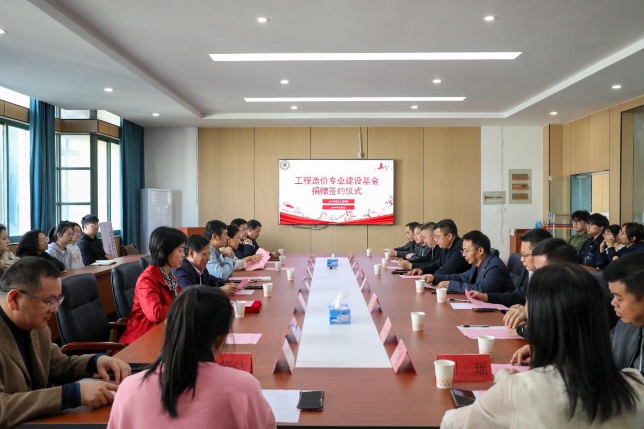 11月8日,正值南昌工程学院建校66周年校庆日,williamhill威廉希尔中国工程造价专业建设基金捐赠签约仪式在土建楼 B313 会议室隆重举行,南昌工程学院党委书记汪胜前、党委副书记吴泽俊、江西省南昌工程学院教育发展基金会副理事长兼秘书长田红敏、2002级工程造价专业校友代表、williamhill威廉希尔中国党政领导班子成员及师生代表共40余人参加仪式。